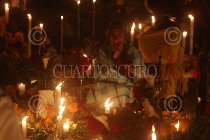 SANTA MARÍA ATZOMPA, OAXACA., 01NOVIEMBRE2016.- Tal y como lo marca la tradición, pobladores del municipio de Santa María Atzompa acuden durante la madrugada de este primero de noviembre al panteón para la "velada a los muertos" y así recibirlos y departir con ellos. Los familiares de los fallecidos llevan bebidas como café, chocolate o incluso mezcal, además de comida, las tumbas las adornan con flores y velas y ahí pernoctan. FOTO: ARTURO PÉREZ ALFONSO /CUARTOSCURO.COM