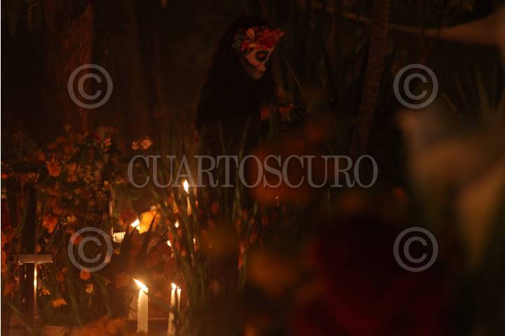 SANTA MARÍA ATZOMPA, OAXACA., 01NOVIEMBRE2016.- Tal y como lo marca la tradición, pobladores del municipio de Santa María Atzompa acuden durante la madrugada de este primero de noviembre al panteón para la "velada a los muertos" y así recibirlos y departir con ellos. Los familiares de los fallecidos llevan bebidas como café, chocolate o incluso mezcal, además de comida, las tumbas las adornan con flores y velas y ahí pernoctan. FOTO: ARTURO PÉREZ ALFONSO /CUARTOSCURO.COM