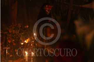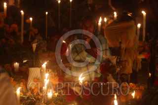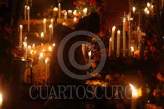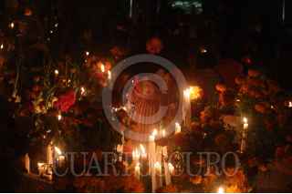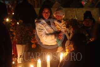 SANTA MARÍA ATZOMPA, OAXACA., 01NOVIEMBRE2016.- Tal y como lo marca la tradición, pobladores del municipio de Santa María Atzompa acuden durante la madrugada de este primero de noviembre al panteón para la "velada a los muertos" y así recibirlos y departir con ellos. Los familiares de los fallecidos llevan bebidas como café, chocolate o incluso mezcal, además de comida, las tumbas las adornan con flores y velas y ahí pernoctan. FOTO: ARTURO PÉREZ ALFONSO /CUARTOSCURO.COM