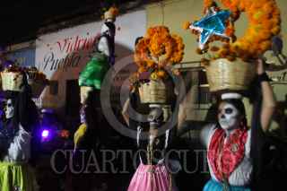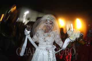 OAXACA, OAXACA., 01NOVIEMBRE2016.- Este primero de noviembre se llevó a cabo la comparsa de las Chinas Oaxaqueñas de doña Genoveva Medina, misma que cumplió su séptimo aniversario. Las chinas vistieron sus tradicionales atuendos que utilizan en las fiestas de la Guelaguetza y con el rostro maquillado de calavera salieron a las calles de Oaxaca a música de banda. FOTO: ARTURO PÉREZ ALFONSO /CUARTOSCURO.COM