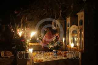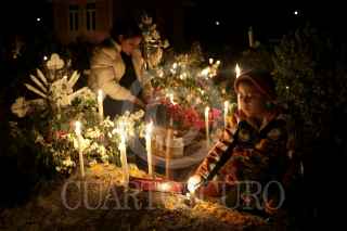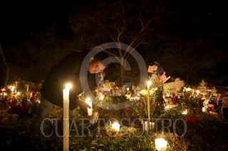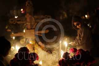 SAN JUAN IXCAQUIXTLA, PUEBLA, 02NOVIEMBRE2016.- Como cada año, cientos de pobladores del municipio de San Juan Ixcaquixtla, Puebla; acuden al panteón para acompañar a sus difuntos durante su visita al mundo de los vivos con música, comida y bebida hasta el amanecer. FOTO: HILDA RÍOS /CUARTOSCURO.COM