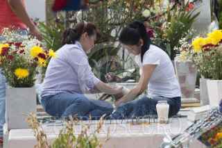 CIUDAD DE MÉXICO, 02NOVIEMBRE2016.- Decenas de personas, aprovechan el día de muertos para encontrarse con sus seres queridos y visitarlos en el panteón San Isidro de la delegación Atzcapozalco. FOTO: ANTONIO CRUZ /CUARTOSCURO.COM