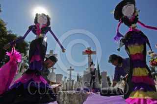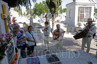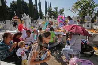 GUADALAJARA, JALISCO. 02NOVIEMBRE2016.-Este día de muertos miles de personas se dieron cita en los diversos panteones municipales de la ciudad para visitar y honrar con flores, mariachis y altares a sus difuntos. FOTO : FERNANDO CARRANZA GARCIA / CUARTOSCURO.COM