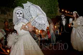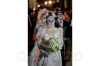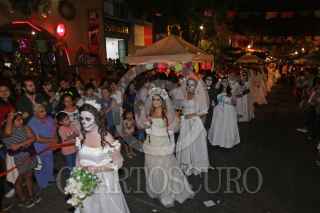 TLAQUEPAQUE, JALISCO. 02NOVIEMBRE2016.-Esta noche en el marco del día de muertos y del 6to Festival de Muertos “Tradición Viva “ en Tlaquepaque, se llevo a cabo una procesión de novias Catrinas, el cual dio inicio en la Plazoleta del Arte hasta el jardín Hidalgo en el centro de ya mencionado municipio. FOTO : FERNANDO CARRANZA GARCIA / CUARTOSCURO.COM
