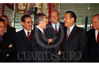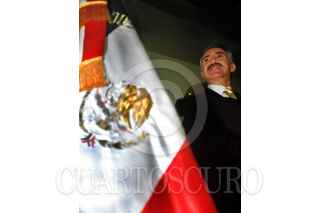 Durante una reunión con miembros de la Confederación Nacional de Organizaciones Populares (CNOP) en el Campo Militar Marte, Roberto Madrazo, líder Nacional del Partido Revolucionario Institucional (PRI), cuestionó al régimen foxista el haber "enganchado e hipotecado" al país al futuro de la economía de los Estados Unidos lo cual, según dijo demuestra la falta de visión del Presidente de la República. FOTO: Juan Pablo Zamora/CUARTOSCURO.COM