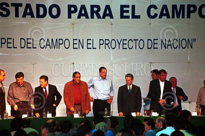 El presidente Fox , se despide de campesinos y productores agricolas, al finalizar la instalación del Dialogo por una Política de Estado para el Campo. FOTO: Oswaldo Ramírez/CUARTOSCURO.COM