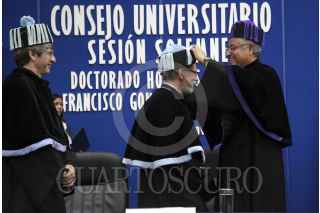 CUERNAVACA, MORELOS, 08NOVIEMBRE2016.- Este día la Universidad Autónoma del Estado de Morelos (UAEM) entrego el Doctorado Honoris Causa al reconocido investigador de biotecnología Francisco Bolívar Zapata. El rector de la UAEM Alejandro Vera Jiménez presido el Consejo Universitario que decidió entregar el reconocimiento. FOTO: MARGARITO PÉREZ RETANA /CUARTOSCURO.COM