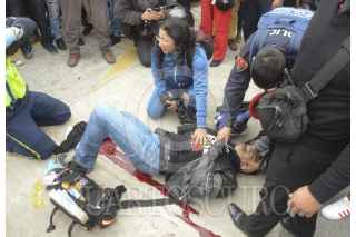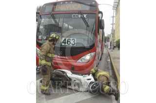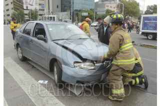 CIUDAD DE MÉXICO, 09NOVIEMBRE2016.- Un motociclista fue impactado por auto modelo Tsuru, que previamente había sido chocado por una unidad del Metrobus, en avenida Balderas y Chapultepec. La víctima sufrió un daño severo en uno de sus pies, paramédicos lo estabilizaron en el lugar. FOTO: ARMANDO MONROY /CUARTOSCURO.COM