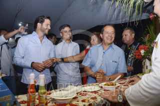 HOLBOX, QUINTANA ROO, 10NOVIEMBRE2016.- El secretario del Medio Ambiente, Rafael Pachiano, y el gobernador Carlos Joaquín, inauguraron 5 muestra gastronómica que organiza la cantante Denise de Kalafe. FOTO: ELIZABETH RUIZ /CUARTOSCURO.COM