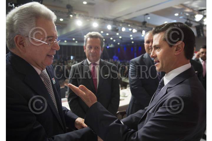 CIUDAD DE MÉXICO, 10NOVIEMBRE2016.- El Presidente Enrique Peña Nieto aseguró hoy, al encabezar la 58ª Semana Nacional de Radio y Televisión, que tiene un fundado optimismo en poder construir una nueva agenda de trabajo en la relación bilateral con los Estados Unidos. En la imagen el mandatario conversa con el empresario de medios Francisco Aguirre. FOTO: PRESIDENCIA /CUARTOSCURO.COM