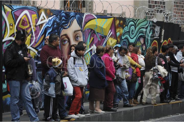 CIUDAD DE MÉXICO, 12NOVIEMBRE2016.- Un grupo de personas esperan formadas el metrobus de la línea 4 que va rumbo a Buenavista. FOTO : DIEGO SIMÓN SÁNCHEZ /CUARTOSCURO.COM