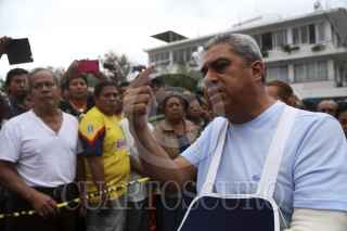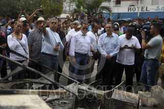 CATEMACO, VERACRUZ, 13NOVIEMBRE2016.- El gobernador interino de Veracruz Flavino Ríos Alvarado acudió a ver las afectaciones del Palacio Municipal, ocasionadas el día de ayer, acompañado del Fiscal del Estado Luis Ángel Bravo Contreras y el alcalde de Catemaco Jorge González Azamar. El gobernador afirma que Gobierno del Estado coadyuvará para restaurar el inmueble. FOTO: ILSE HUESCA /CUARTOSCURO.COM