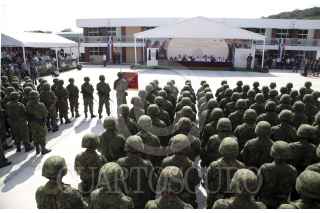 JOJUTLA, MORELOS, 15NOVIEMBRE2016.- El Secretario de Defensa Nacional, Salvador Cienfuegos Cepeda, en compañía del Secretario de Educación Aurelio Nuño Mayer y el gobernador de Morelos Graco Ramírez Abreu inauguraron el Jardín de niños "Celia Muñoz Escobar" y la escuela primaria Genovevo de la O, ubicados en el campo militar 24-C sede del 108 Batallón de Infantería del Ejercito Mexicano. FOTO: MARGARITO PÉREZ RETANA /CUARTOSCURO.COM