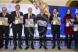 CIUDAD DE MÉXICO, 15NOVIEMBRE2016.- El titular de SAGARPA, José Eduardo Calzada Rovirosa, presentó anoche el Atlas Agroalimentario 2016, en el Alcazar del Castillo de Chapultepec. Fue acompañado por sus homólogos de Salud, José Narro Robles y de Medio Ambiente, Rafael Pacchiano Alemán. FOTO: ANDRÉS YAÑEZ /CUARTOSCURO.COM