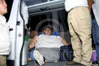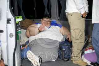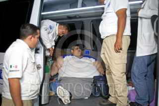 GUADALAJARA, JALISCO. 15NOVIEMBRE2016.- Juan Pedro Franco de 32 años de edad y uno de los hombres mas obesos del mundo con aproximadamente 500 kilos, durante su arribó a la ciudad al Hospital Jardines, en donde en los próximos días se le realizaran los estudios pertinentes y valorar las posibilidades de una intervención quirúrgica para una mejor calidad de vida. FOTO : FERNANDO CARRANZA GARCIA / CUARTOSCURO.COM