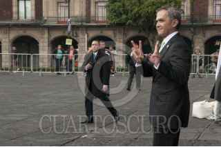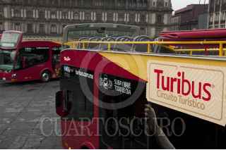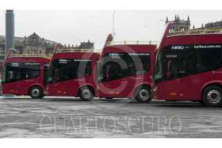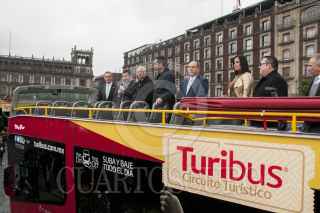 CIUDAD DE MÉXICO, 16NOVIEMBRE2016.- Miguel Ángel Mancera, Jefe de Gobierno, y Miguel Torruco Márques, Secretario de Turismo, dieron el banderazo de salida de 10 turibuses nuevos, en la explanada de la Plaza de la Constitución. Los unidadescuentan con servicio WI-FI, pantallas de alta definición, sistema de audio con 10 idiomas, entre otros sevicios. FOTO: PAULINA NEGRETE /CUARTOSCURO.COM