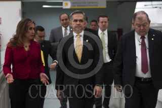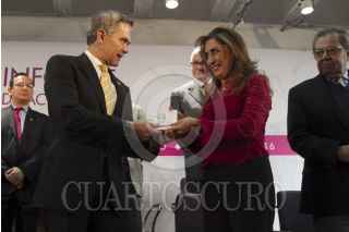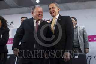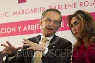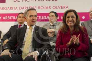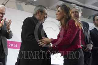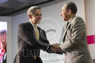 CIUDAD DE MÉXICO, 17NOVIEMBRE2016.- Miguel Ángel Mancera, Jefe de Gobierno, recibió el cuarto informe de labores de Margarita Darlene Rojas Olvera, presidenta de la Junta Local de Conciliación y Arbitraje de la CDMX. A la ceremonia asistió Porfirio Muñoz Ledo. FOTO: MOISÉS PABLO /CUARTOSCURO.COM