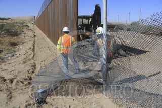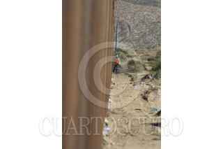 CIUDAD JUÁREZ, CHIHUAHUA, 17NOVIEMBRE2016.- Para impedir el contacto entre habitantes de ambas naciones, como tradicionalmente ocurre en la zona de Anapra, el gobierno de los Estados Unidos ha iniciado la sustitución de la malla ciclónica limítrofe por una alta pared de hierro. En ese tramo entre Anapra y Sunland Park, las familias separadas por la deportación se entrelazaban las manos, como ocurrió en el evento previo a la reciente visita del Papa Francisco. Los trabajos iniciaron hace un par de semanas con la excavación de una zanja profunda para armar los cimientos de concreto y metal que, a la vez que servirán de contención subterránea, serán la base para asentar el muro. FOTO: NACHO RUÍZ /CUARTOSCURO.COM