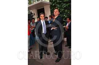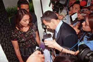 José Luis Villavicencio, notario Público, hace entrega de la solicitud a la secretaria de Javier Moreno Valle, director de CNI- Canal 40, para que informe a TV Azteca el estado de deuda en el que se encuentra actualmente CNI. FOTO: Juan Pablo Zamora/CUARTOSCURO.COM