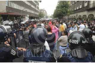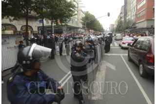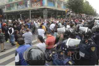 CIUDAD DE MÉXICO, 17NOVIEMBRE2016.- Comerciantes ambulantes de la calle de Mesones, en el Centro Histórico, protestaron porque no los dejaron vender sobre la vía pública. Los inconformes bloquearon a avenida Pino Suárez, pero granaderos se los impidieron colocando una valla humana. FOTO: ARMANDO MONROY /CUARTOSCURO.COM