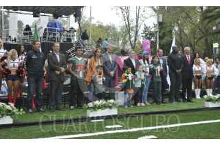CIUDAD DE MÉXICO, 19NOVIEMBRE2016.- Miguel Ángel Mancera, jefe de Gobierno de la Ciudad de México; Horacio Vega, director de Indeporte; el ex jugador de los Bills de Búfalo, Bruce Smith, inauguraron el Fan Fest NFL en la primera sección bosque de Chapultepec. FOTO: ANTONIO CRUZ /CUARTOSCURO.COM