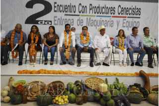 CHILPANCINGO, GUERRERO, 19NOVIEMBRE2016.- Héctor Astudillo Flores gobernador del estado de Guerrero, sostuvo el segundo encuentro con campesinos afiliados a la Confederación Nacional Campesina (CNC) que encabeza el dirigente estatal Edel Chona, ahí el mandatario estatal hizo entrega de equipo tractores, sembradores a diferentes; campesinos del estado. FOTO: JOSÉ I. HERNÁNDEZ / CUARTOSCURO.COM