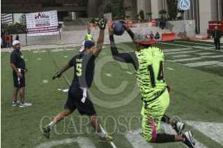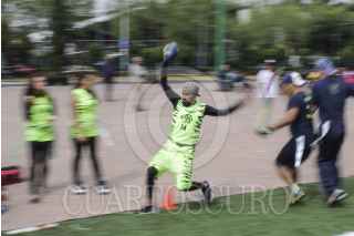 CIUDAD DE MÉXICO, 20NOVIEMBRE2016.- Aficionados al futbol americano practican "tochito" en la cancha que instaló la delegación Cuauhtémoc en su explanada, con motivo del partido de la NFL que se disputará en nuestro país este lunes. FOTO: ISAAC ESQUIVEL /CUARTOSCURO.COM
