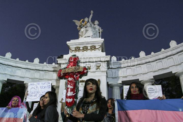 CIUDAD DE MÉXICO, 20NOVIEMBR2016.- Mujeres y hombres trans, acompañados hombres y mujeres de la diversidad sexual, realizaron una marcha por la Alameda Central, en demanda de justicia y en memoria de los últimos transfeminicidios en la Ciudad de México y algunos estados del país. El 20 de noviembre se recuerda como el Día Internacional de la Memoria Transexual, para dar visibilidad de la violencia ejercida contra las personas trans en el mundo. Según informes de organizaciones no gubernamentales, México es el segundo país en el continente americano con asesinatos a esta comunidad, despues de Brasil que tiene 123, México cuenta con 53 asesinatos de octubre de 2015 a noviembre de este año. FOTO: ADOLFO VLADIMIR /CUARTOSCURO.COM