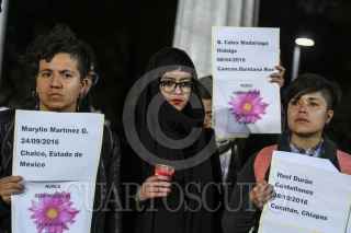 CIUDAD DE MÉXICO, 20NOVIEMBR2016.- Mujeres y hombres trans, acompañados hombres y mujeres de la diversidad sexual, realizaron una marcha por la Alameda Central, en demanda de justicia y en memoria de los últimos transfeminicidios en la Ciudad de México y algunos estados del país. El 20 de noviembre se recuerda como el Día Internacional de la Memoria Transexual, para dar visibilidad de la violencia ejercida contra las personas trans en el mundo. Según informes de organizaciones no gubernamentales, México es el segundo país en el continente americano con asesinatos a esta comunidad, despues de Brasil que tiene 123, México cuenta con 53 asesinatos de octubre de 2015 a noviembre de este año. FOTO: ADOLFO VLADIMIR /CUARTOSCURO.COM