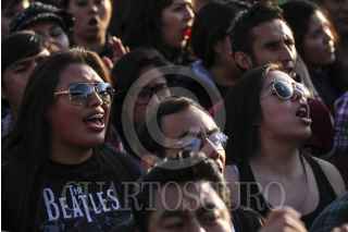 CIUDAD DE MÉXICO, 20NOVIEMBR2016.- Cientos de fans se concentraron en el Zócalo capitalino para escuchar a diversos grupos musicales tocaron covers de las famosa banda, The Beatles, el gobierno de la Ciudad realizó el homenaje al cuarteto de Liverpool. FOTO: ADOLFO VLADIMIR /CUARTOSCURO.COM