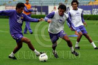 José María " Chima" Ruíz se barre en la defensa durante el partido interescuadras de Tigres en el estadio Universitario, que se prepara para el partido clasico, de este sábado. FOTO: Pedro Valtierra/CUARTOSCURO.COM