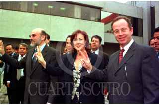 Luis Felipe Bravo Mena, Laura Zapata y José Luis Luege Tamargo, esta mañana en el IFE, donde candidatos a diputados por el PAN, se registraron ante dicho organísmo. FOTO: Pedro Mera/CUARTOSCURO.COM
