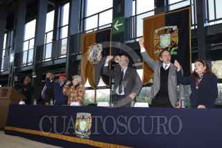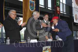 CIUDAD DE MÉXICO, 22NOVIEMBRE2016.- El rector de la Universidad Nacional Autónoma de México, Enrique Graue Wiechers, en compañía del Secretario General del STUNAM, Agustín Rodríguez Fuentes, realizaron la entrega de medallas y reconocimientos a trabajadores por 25 y 50 años de labor universitaria dentro de esta institución. FOTO: ADRIANA ÁLVAREZ /CUARTOSCURO.COM