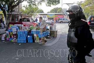 GUADALAJARA, JALISCO. 22NOVIEMBRE2016.- La madrugada de este martes autoridades municipales realizaron un operativo para retirar a locatarios y sus mercancías de lo que hasta hoy fuera la Feria Permanente del Calzado, ubicada en la calle Pensador Mexicano justo en los cruces de las calles 74 y 78, la cual tiene aproximadamente 30 años de antigüedad, al parecer el motivo, es por que dicho inmueble irrumpe algunas normas de los espacios públicos, ya que abarca parte de las banquetas y calles de los alrededores. FOTO : FERNANDO CARRANZA GARCIA / CUARTOSCURO.COM