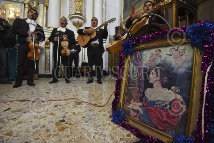 TOLUCA, MÉXICO, 22NOVIEMBRE2016.- Músicos acudieron a la iglesia de la Merced, en la ciudad de Toluca para venerar a Santa Cecilia, llevando imágenes para que fueran bendecidas después de la eucaristía. FOTO: PILAR AGUILAR /CUARTOSCURO.COM