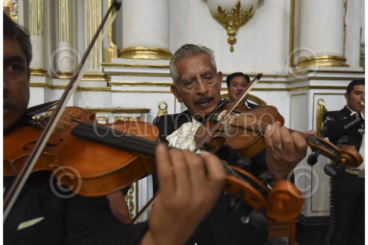 TOLUCA, MÉXICO, 22NOVIEMBRE2016.- Músicos acudieron a la iglesia de la Merced, en la ciudad de Toluca para venerar a Santa Cecilia, llevando imágenes para que fueran bendecidas después de la eucaristía. FOTO: PILAR AGUILAR /CUARTOSCURO.COM