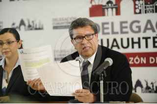 CIUDAD DE MÉXICO, 23NOVIEMBRE2016.- Ricardo Monreal, jefe delegacional de Cuauhtémoc, ofreció una conferencia de prensa para hablar sobre la situación que se mantiene en torno a la clausura del teatro San Rafael, en donde hace unos días se iba estrenar el musical Amor Eterno, pero que las autoridades delegacionales clausuraron por que la producción no contaba con los permisos necesarios. FOTO: ARMANDO MONROY /CUARTOSCURO.COM