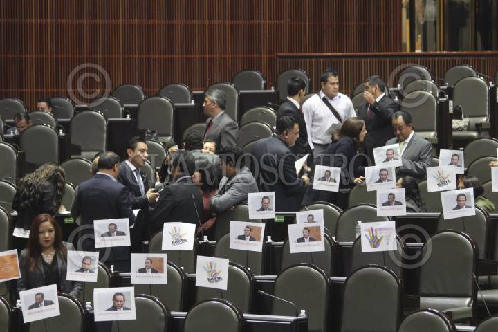CIUDAD DE MÉXICO, 24NOVIEMBRE2016.- Diputados de oposición se manifestaron en contra del secretario de Desarrollo Social, Luis Enrique Miranda, quien el día de ayer le respondió a la diputada de Morena Araceli Damián, durante su comparecencia "que le hacía falta estudiar psiquiatría para entenderla", cuando ambos discutían sobre las cifras de pobreza en el país. Los legisladores pidieron la renuncia del funcionario y tomaron por momentos la tribuna. FOTO: CUARTOSCURO.COM