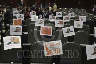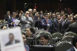 CIUDAD DE MÉXICO, 24NOVIEMBRE2016.- Diputados de oposición se manifestaron en contra del secretario de Desarrollo Social, Luis Enrique Miranda, quien el día de ayer le respondió a la diputada de Morena Araceli Damián, durante su comparecencia "que le hacía falta estudiar psiquiatría para entenderla", cuando ambos discutían sobre las cifras de pobreza en el país. Los legisladores pidieron la renuncia del funcionario y tomaron por momentos la tribuna. FOTO: CUARTOSCURO.COM