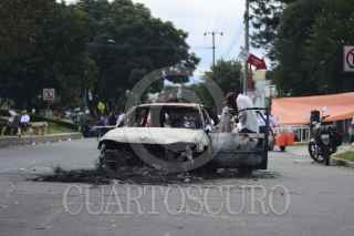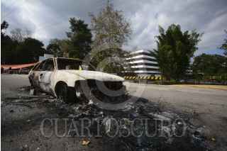 XALAPA, VERACRUZ, 24NOVIEMBRE2016.- Ayer por la noche empresarios y docentes quemaron un automóvil en las afueras de SEFIPLAN para exigir el pago de sueldos y servicios prestados al gobierno, la unidad reducida permaneció como testigo de la crisis que vive el estado, sin que se vean para los afectados una solución al corto plazo. FOTO: ALBERTO ROA /CUARTOSCURO.COM