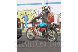 CIUDAD DE MÉXICO, 24NOVIEMBRE2016.- No hay imposibles en la vida cuando te lo propones, un hombre que a falta una pierna se las ingenió para manejar su motocicleta, realizando sus cambios con un palo adherido a su muñón. FOTO: ARMANDO MONROY /CUARTOSCURO.COM