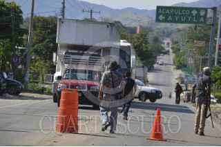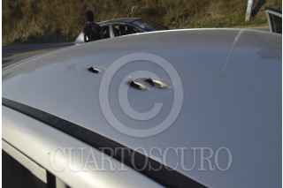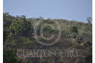 TIERRA COLORADA, GUERRERO, 24NOVIEMBRE2016.- Se enfrentaron policías comunitarios de la Upoeg y del Fusdeg, apostados en las faldas de los barrancos intercambiaron disparos, posteriormente se observo una persona tirada, se desconoce si estaba herido o solo se arrojó al piso para no ser alcanzados por los proyectiles. En el fuego un auto en el que viajaban reporteros fue alcanzando por los proyectiles, sin personas lesionadas. FOTO: JOSÉ I. HERNÁNDEZ /CUARTOSCURO.COM