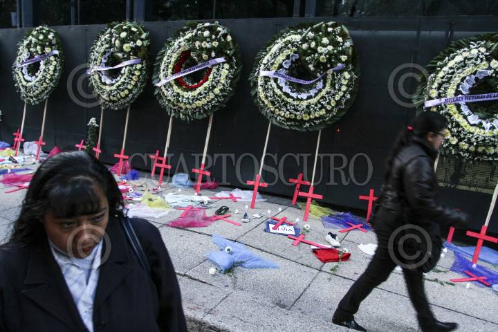 CIUDAD DE MÉXICO, 25NOVIEMBRE2016.- Organizaciones de mujeres colocaron cruces, coronas de flores, veladoras y articulos de desaparecidas y asesinadas en el edificio de la Procuraduria General de la República, como parte de las manifestaciones y exigencia de justicia durante el Día Internacional Día Internacional de la Eliminación de la Violencia contra la Mujer. FOTO: ADOLFO VLADIMIR /CUARTOSCURO.COM
