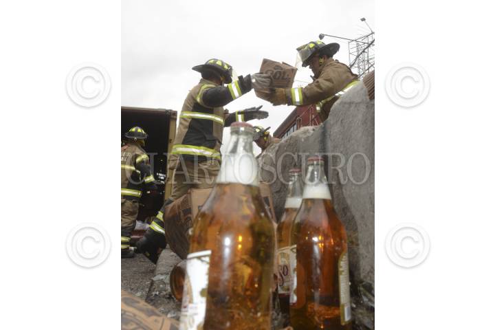 CIUDAD DE MÉXICO, 26NOVIEMBRE2016.- Un tráiler de doble remolque que trasportaba cerveza volcó sobre la avenida Insurgentes en la glorieta de la Raza con dirección a Indios Verdes. FOTO: ARMANDO MONROY /CUARTOSCURO.COM