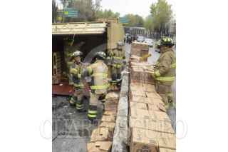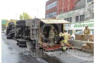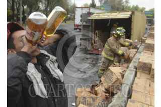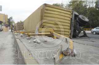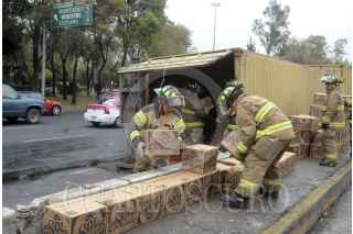 CIUDAD DE MÉXICO, 26NOVIEMBRE2016.- Un tráiler de doble remolque que trasportaba cerveza volcó sobre la avenida Insurgentes en la glorieta de la Raza con dirección a Indios Verdes. FOTO: ARMANDO MONROY /CUARTOSCURO.COM