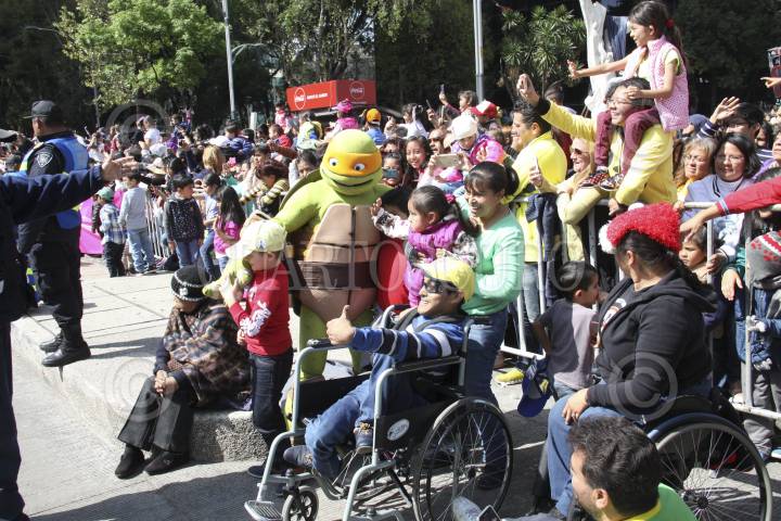CIUDAD DE MÉXICO, 26NOVIEMBRE2016.- Sobre Paseo de la Reforma se realizó un desfile navideño, organizado por una tienda departamental, en el cual participaron bandas de guerra, bailarines, actores caracterizados con temáticas infantiles, y globos aerostáticos. Decenas de niños se dieron cita al encuentro que partió de la Estela de Luz a la glorieta de Colón. FOTO: ANTONIO CRUZ /CUARTOSCURO.COM