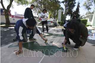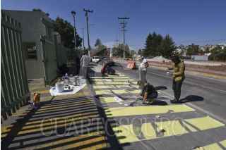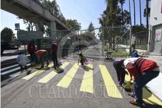 TOLUCA, ESTADO DE MÉXICO, 27NOVIEMBRE2016.- Estudiantes de la UAEM realizaron la pinta de “cebras” en los accesos a peatones y automovilistas de Ciudad Universitaria, como parte del concurso Cebraton UAEMEX 2016, con el fin de cambiar las tradicionales rayas amarillas y blancas de los cruceros, y una forma de fomentar la cultura vial. FOTO: PILAR AGUILAR / CUARTOSCURO.COM
