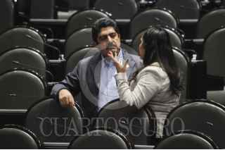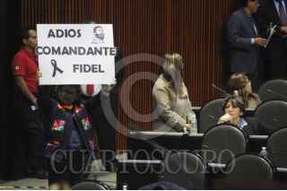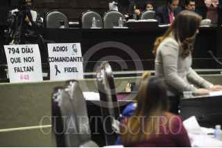 CIUDAD DE MÉXICO, 29NOVIEMBRE2016.- Margarita Cuata Domínguez, diputada de MORENA, mostró pancartas durante la sesión ordinaria en el Palacio Legislativo de San Lázaro. FOTO: DIEGO SIMÓN SÁNCHEZ /CUARTOSCURO.COM