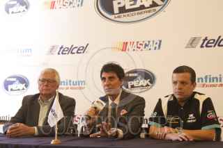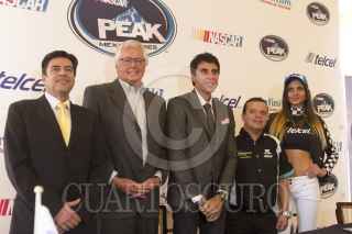 CIUDAD DE MÉXICO, 29NOVIEMBRE2016.- Michel Jourdain, Director Operativo de NASCAR México; Jimmy Morales, director general de Nascar Peak México, y el piloto José Luis Ramírez, presentaron el serial automovilístico Nascar Peak México, que se realizará en el Autódromo Rodríguez. FOTO: MOISÉS PABLO /CUARTOSCURO.COM
