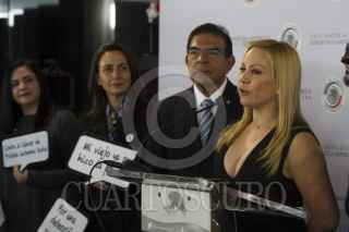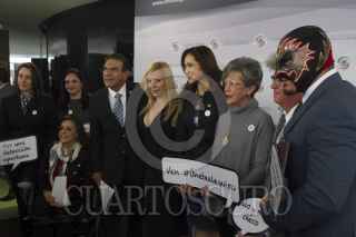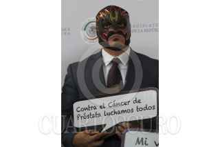 CIUDAD DE MÉXICO, 29NOVIEMBRE2016.- El senador Salvador López Brito; la luchadora estrellita; Mayra Galindo, directora de la Asociación Mexicana de Lucha contra el Cáncer; y el luchador Hechicero, ofrecieron una conferencia de prensa para dar conocer las acciones que emprenderán porel Día Nacional de la Lucha contra el Cáncer de Próstata, en el Senado de la República. FOTO: MOISÉS PABLO /CUARTOSCURO.COM